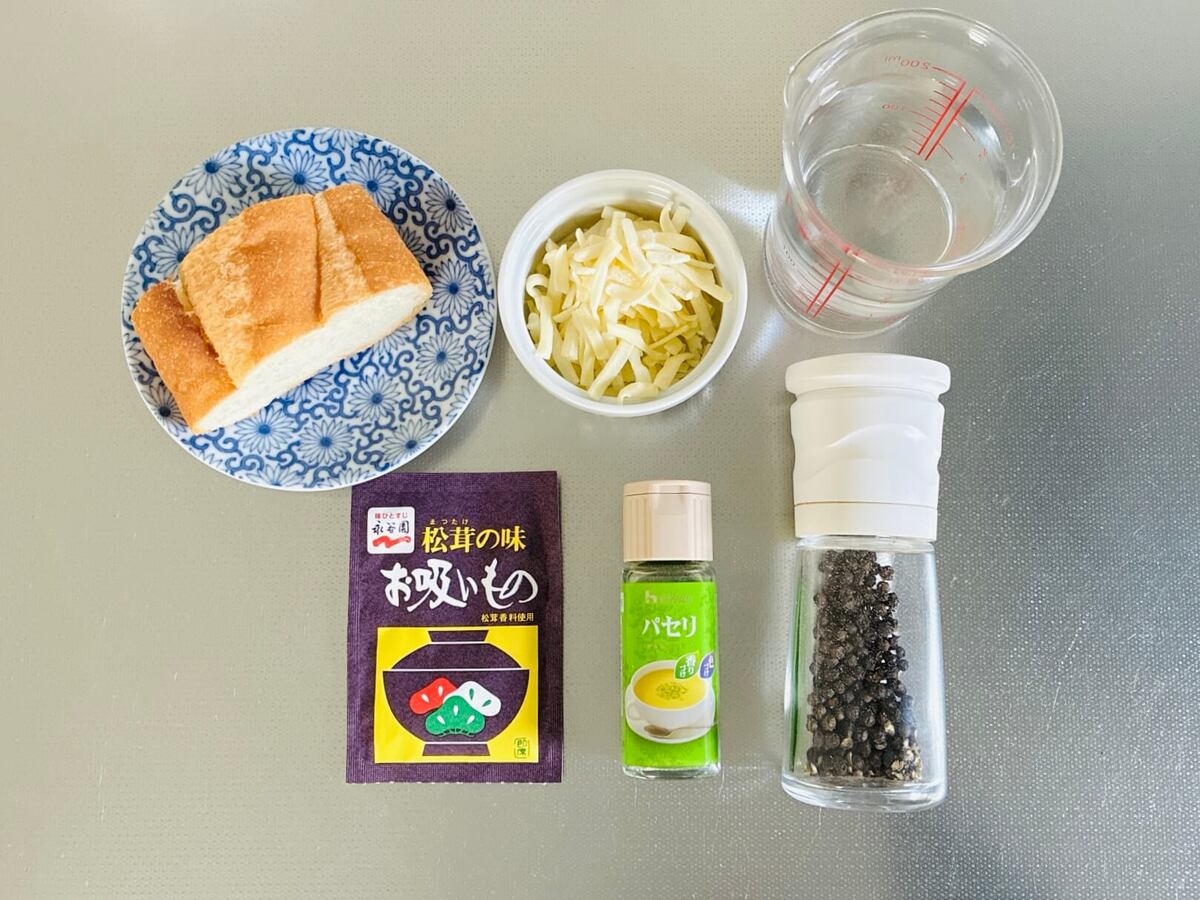 松茸風味のお吸いものに、まさかのバケットを組み合わせるというなんとも不思議なレシピなのです!