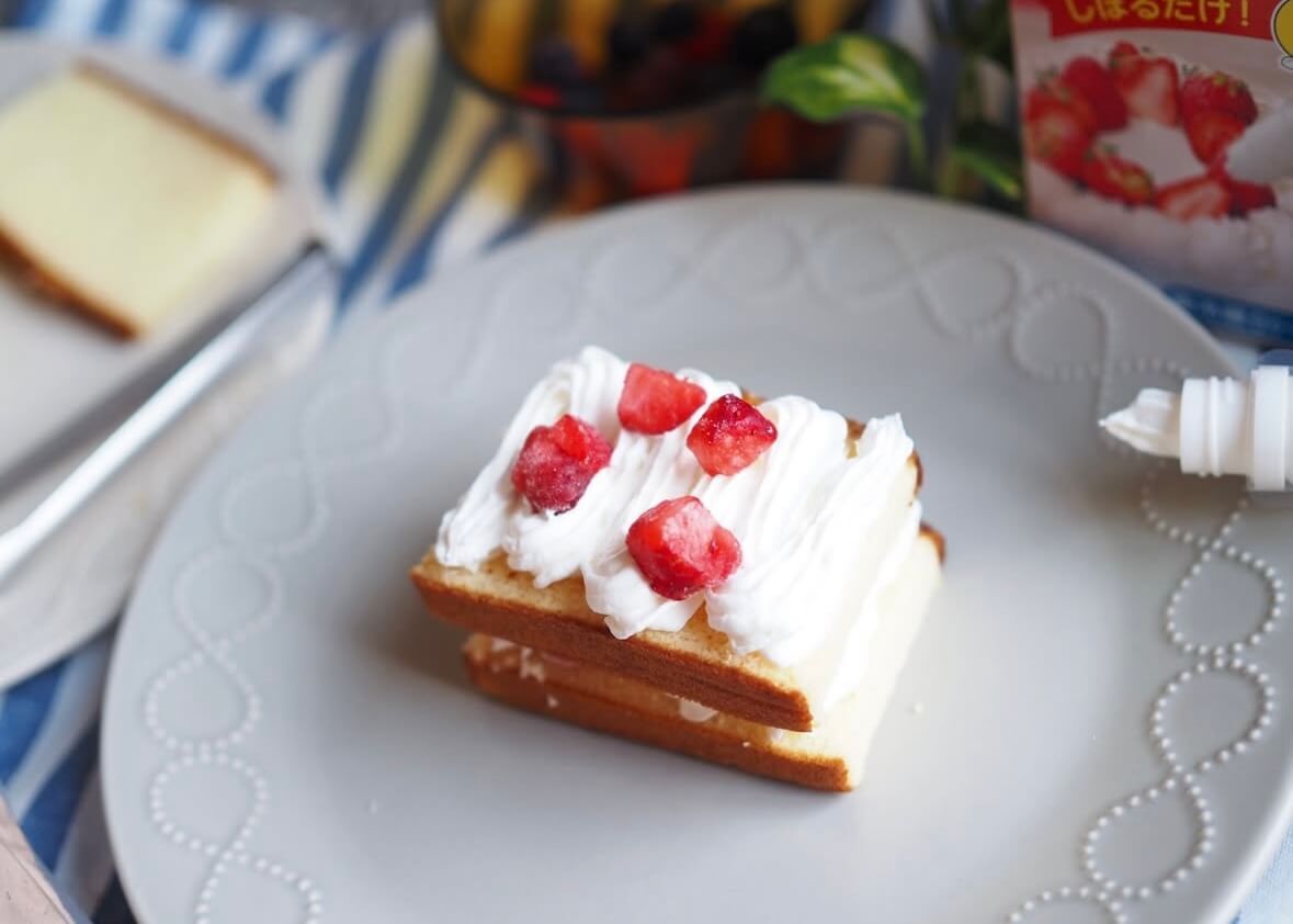 ケーキを1から作ろうとうすると材料を混ぜたりオーブンで焼いたり、ホイップを泡立てたりと時間も手間もかかってしまいますが、これなら切って盛り付けるだけで、あっという間に作れるので手軽にスイーツ作りを楽しみたい方におすすめです。