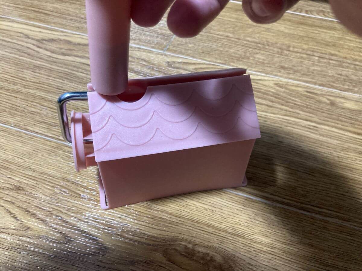 見た目は家のフィギュアで掃除道具に見えませんが、スライドすると粘着ローラーが取り出せます。