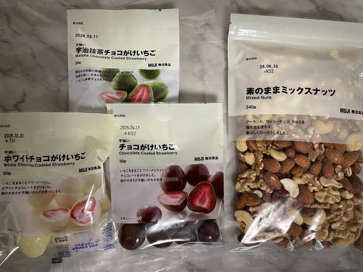 無印のミックスナッツは 食塩・油不使用 が魅力。余分な味つけがないので「純粋なナッツの旨み」で飽きずに食べられ、夜遅くの作業でも罪悪感がありません。