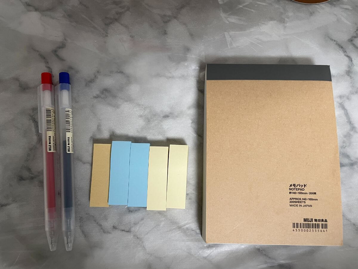 また、無印の付箋はのりが強すぎず弱すぎない絶妙なバランス。剥がして貼り直すことが多い勉強用途にも向いています。