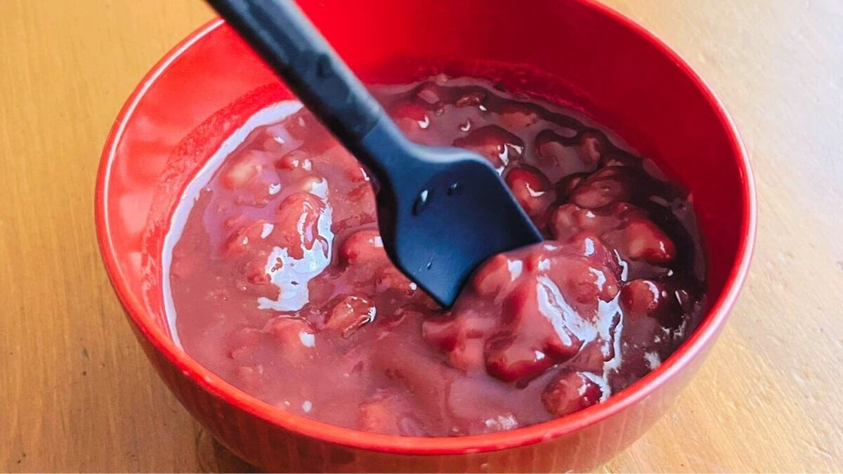 電子レンジで温めます(ラップの有無や加熱時間は、ぜんざいのパッケージに記載の内容に合わせてください)。