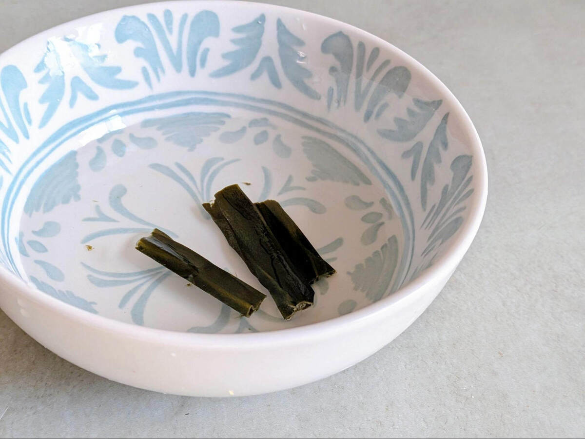 昆布は香りが移ったら、かたくなる前に取り出します。この時は1分半ほどで取り出しました。