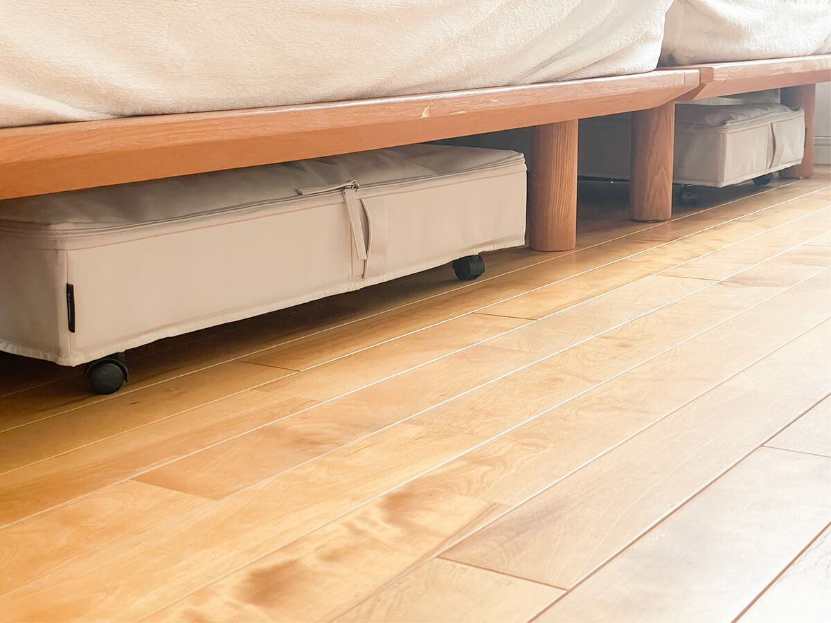 キャスターが付いていることで、収納アイテムが床から少し浮き、ベッド下にホコリが溜まりにくいのです。