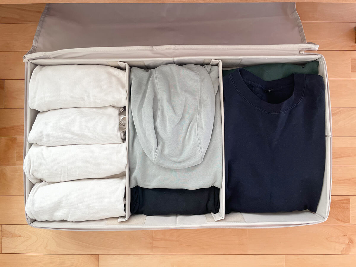 急に肌寒くなった夜も、ベッド下ならスムーズに取り出せますよ。