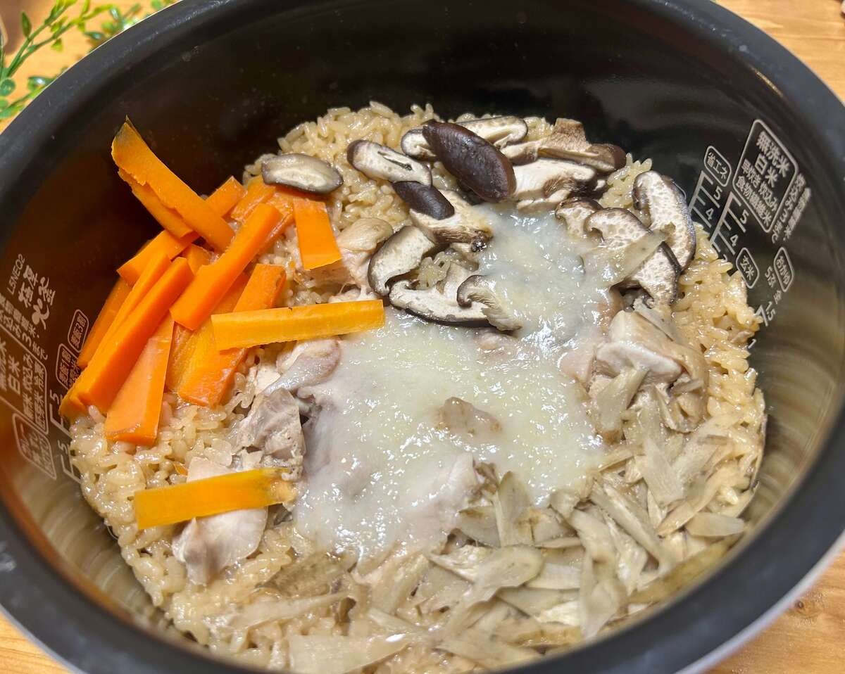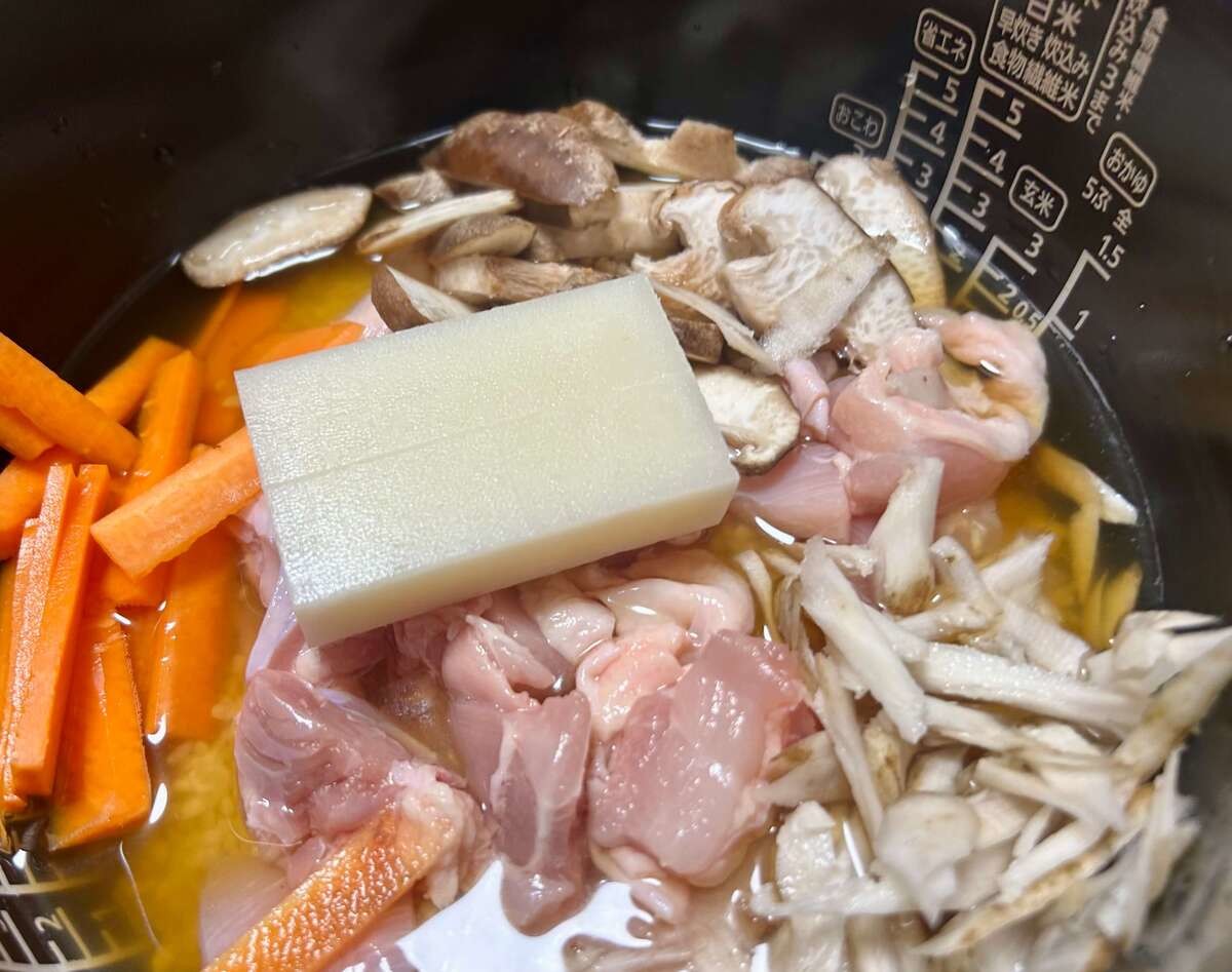 今回筆者は、炊飯器の炊き込みご飯モードを使用しました。