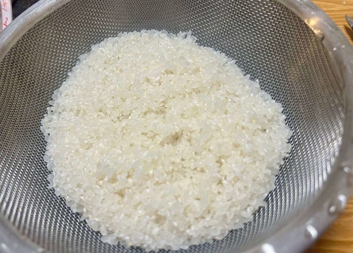 米はといで、ざるに上げておきましょう。ここで、しっかり水けを切っておくのがポイントです♪