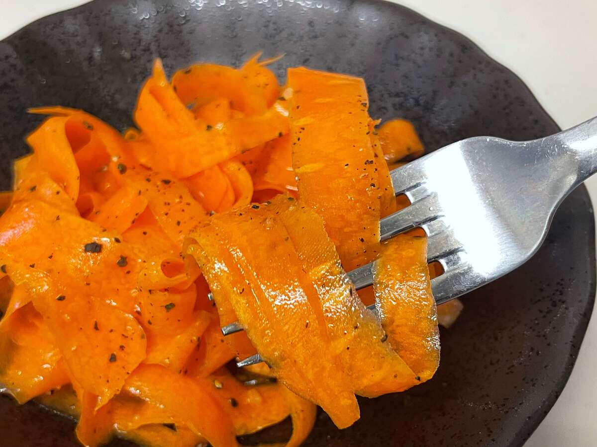 調味液がよく馴染んでいて、にんじん特有の甘みが自然と引き立ちます。