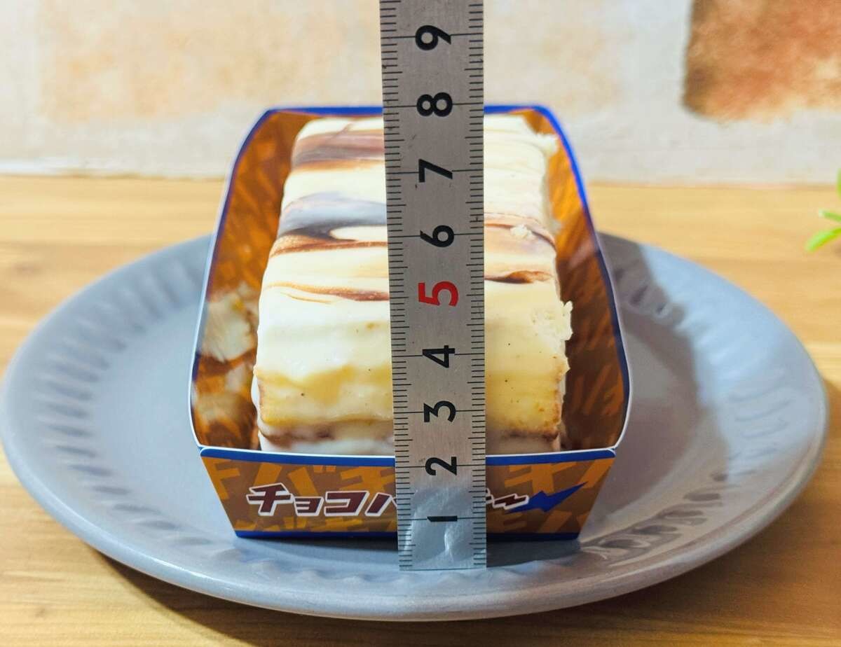試しに実測すると厚みは約4㎝ほどで、チョコバッキーアイスを重ねた3個分くらいの厚さでしょうか。