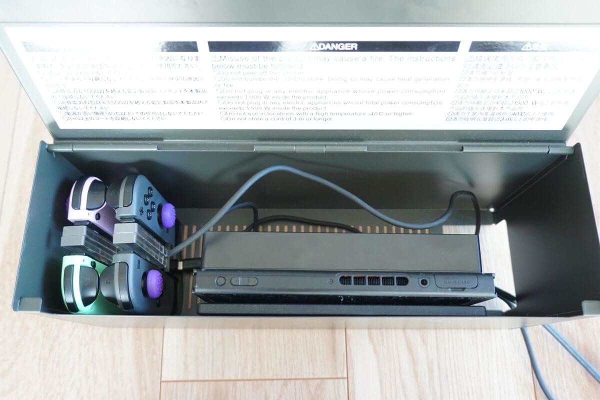 配線整理だけでなく、ゲーム機の収納としても超優秀な一品です。