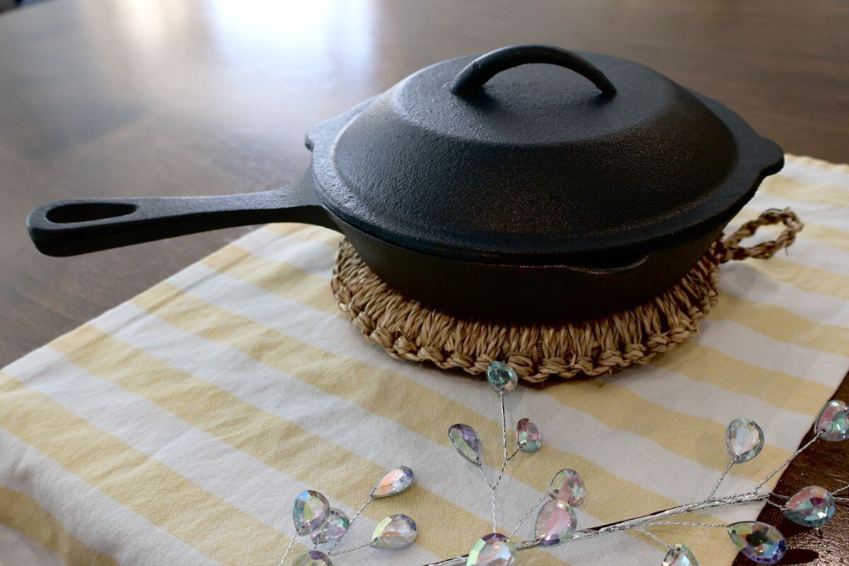 写真のスキレットパンは直径20㎝でジャストサイズですが、直径30㎝の大きなお鍋でも問題なく使えています。