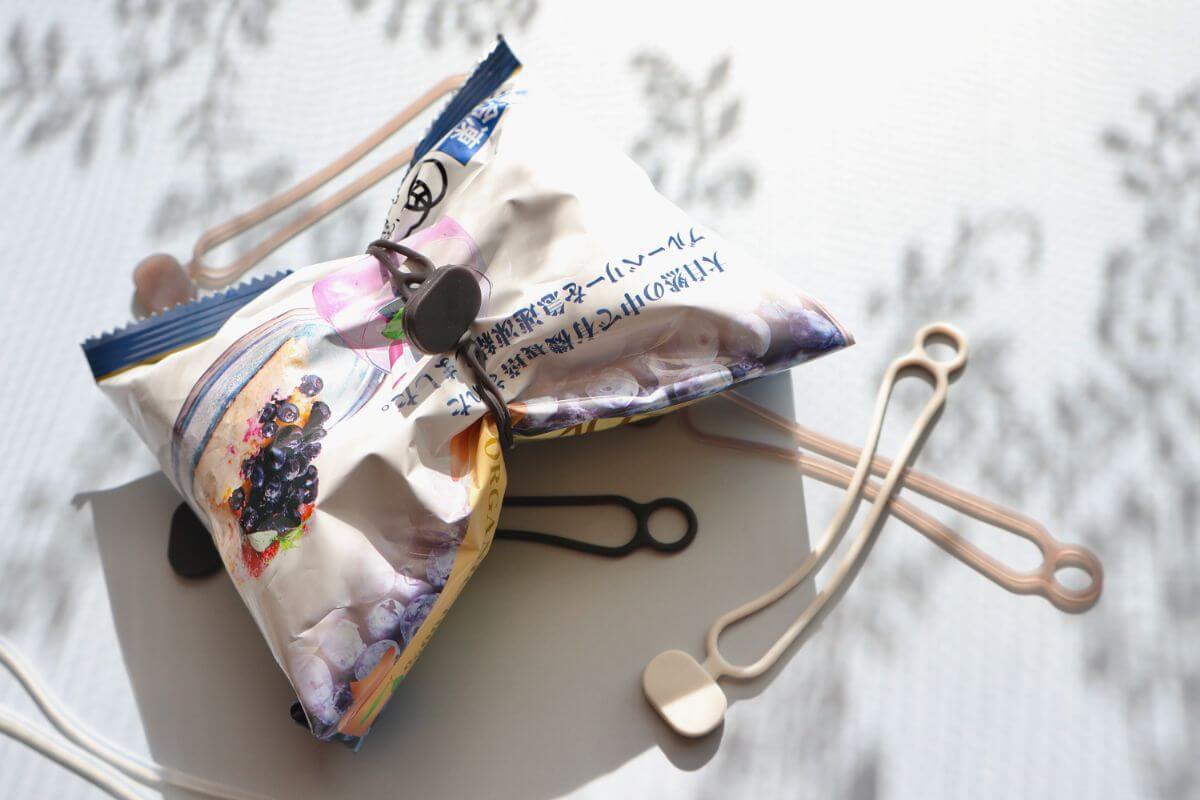 止め方はリングに楕円の部分を通すというシンプルな仕組みです。公式でも紹介されているように、食べかけの食品やコード類を纏めたりと食品以外にも使用できます。