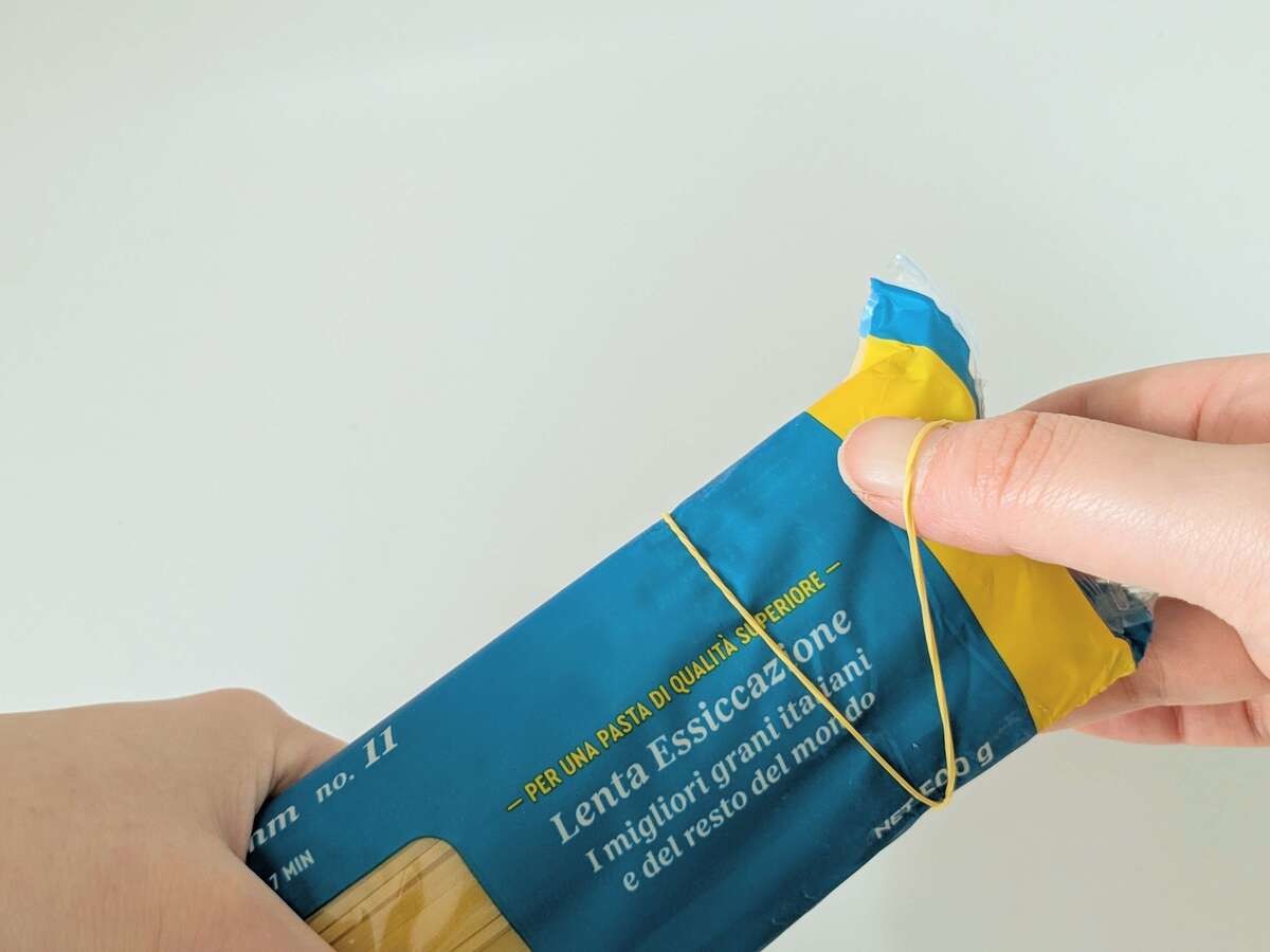 必要な分を取り出したら袋を折って輪ゴムで2カ所止めます。
