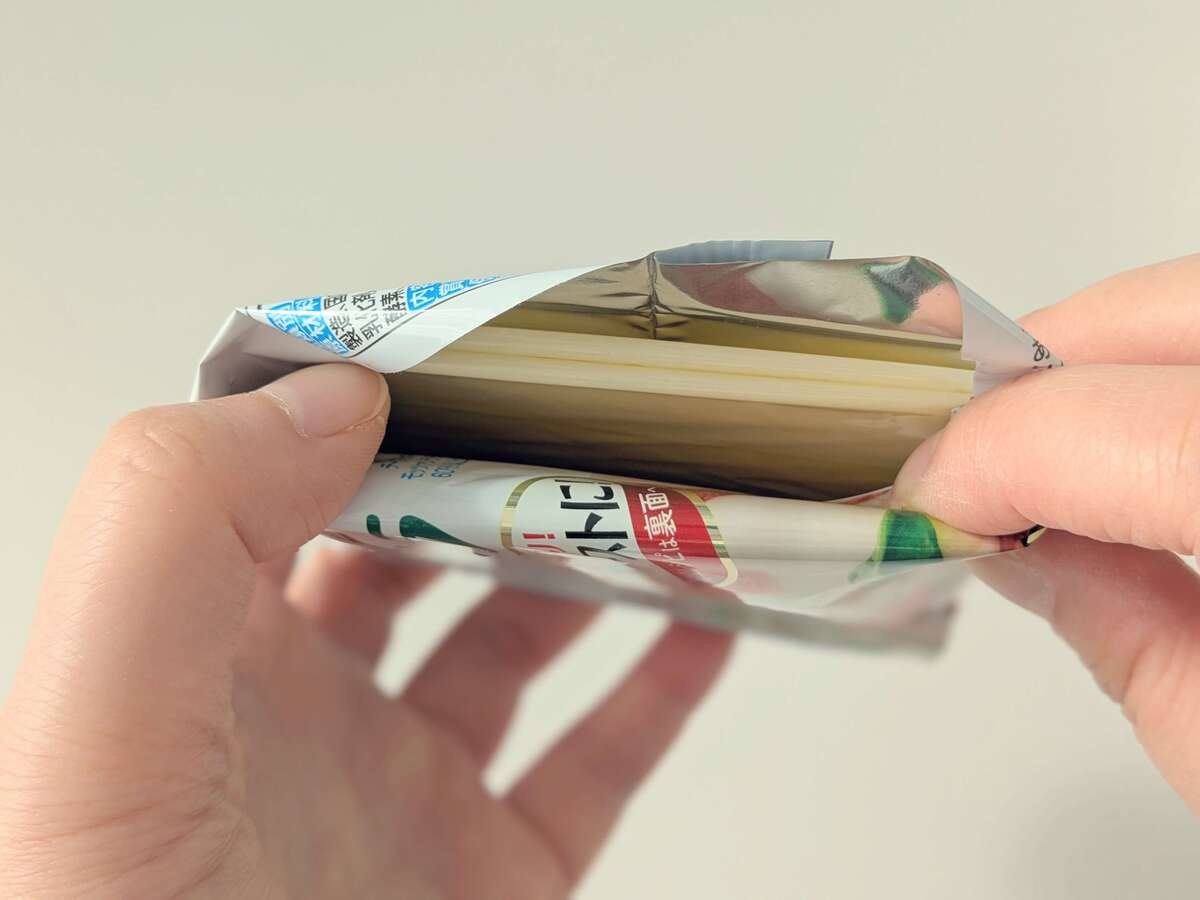 そこで試してほしいのが、袋の端を切るのではなく長辺の側面を切ること。