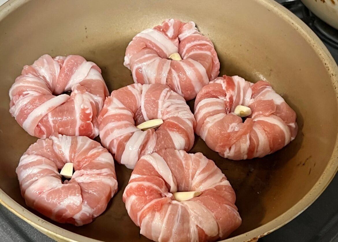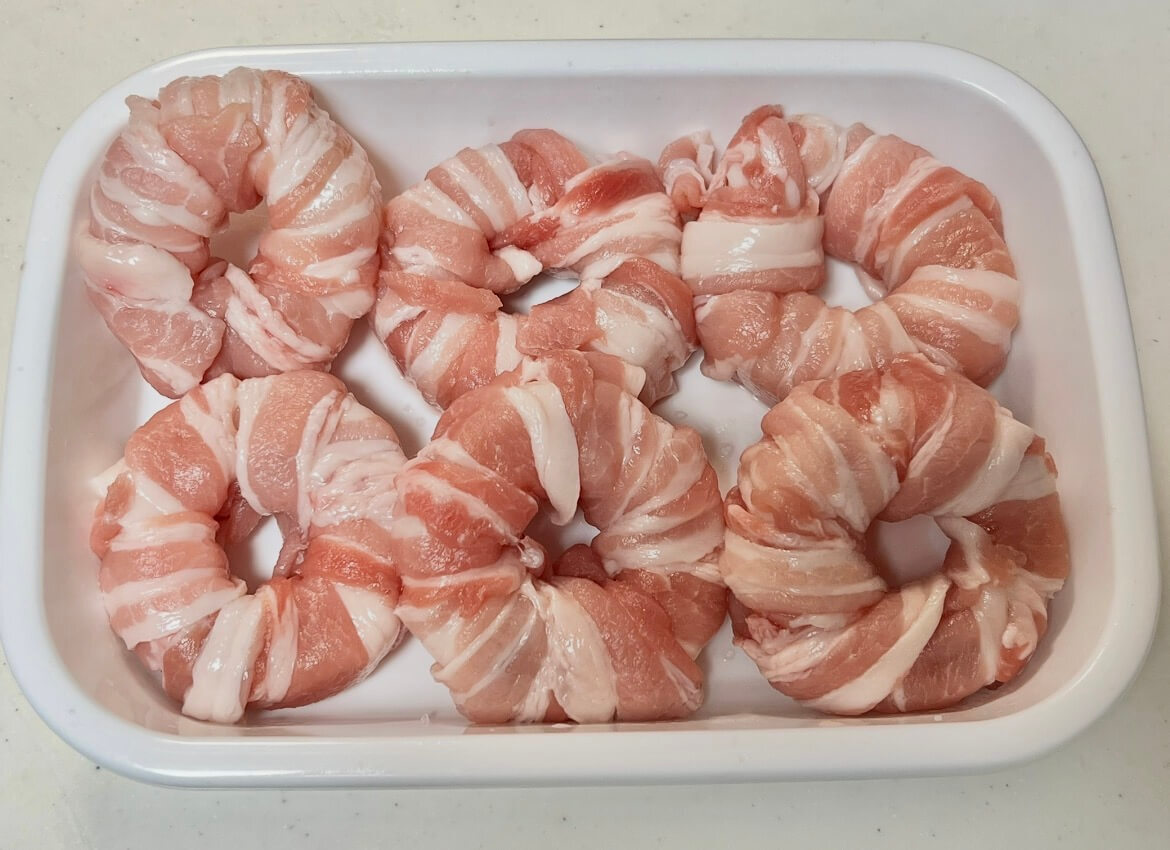 なんとそんな大根の最高部位をくり抜いてドーナツ状にし、豚バラ肉をぐるぐると巻いていくという大胆なレシピなんです♪