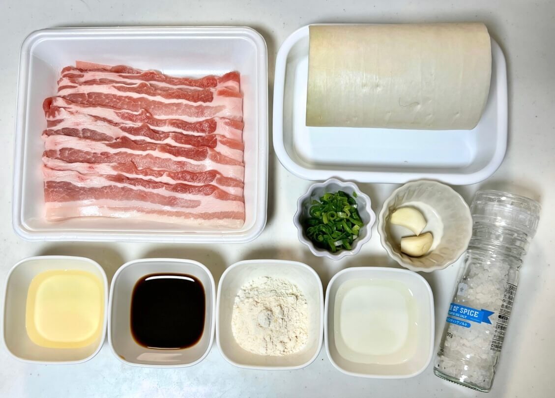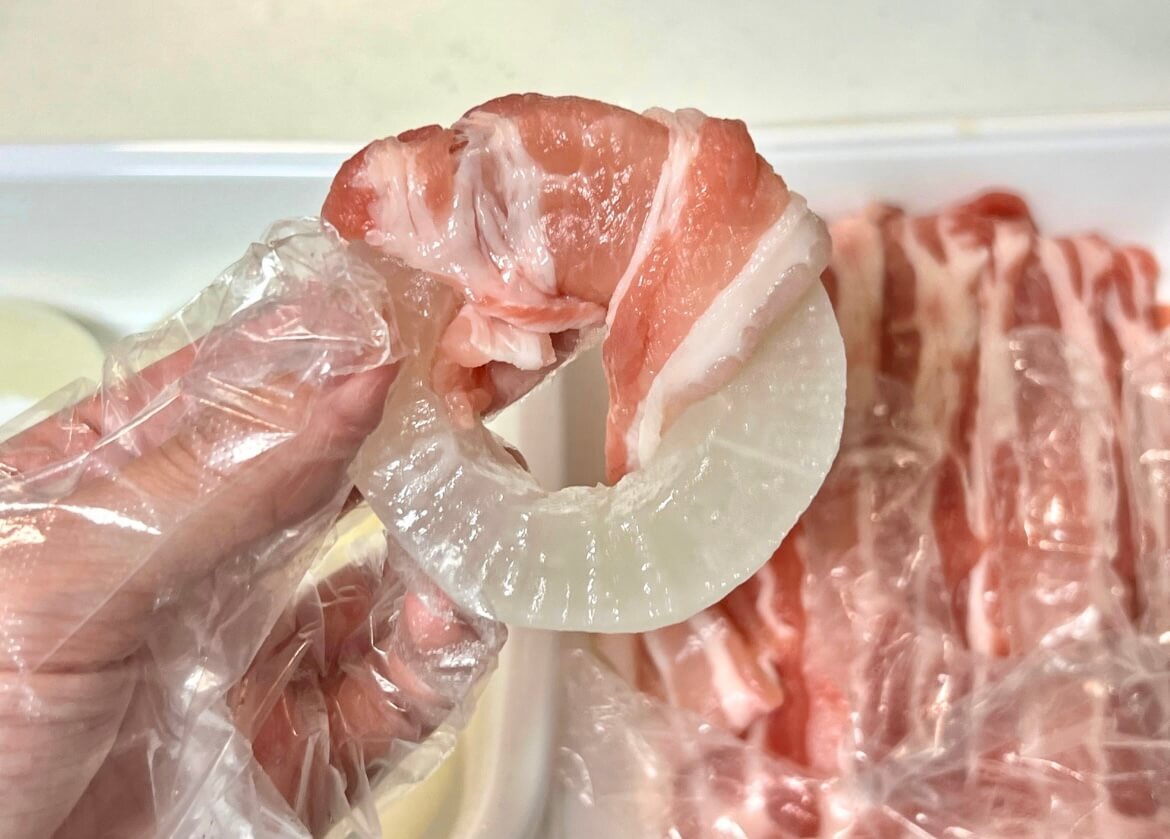 大根1つに対して、豚バラ肉は約3枚ほど。