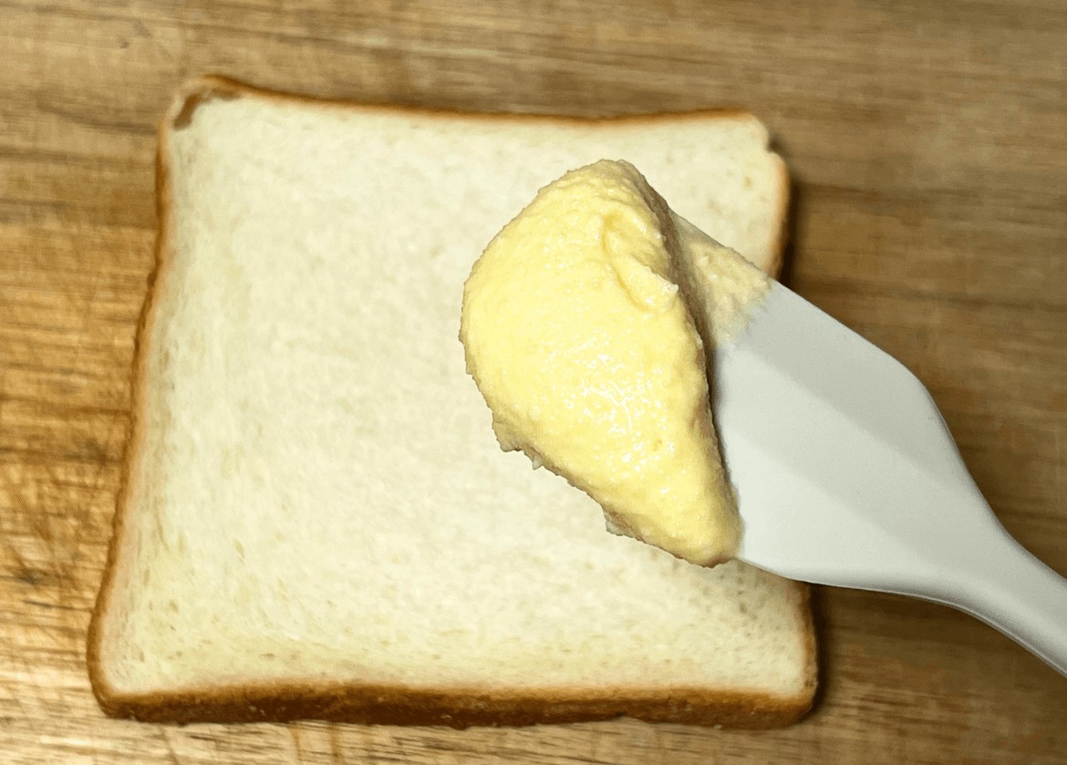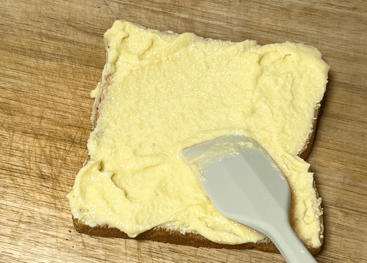 ここでのポイントは、食パンからはみ出る勢いで端までしっかりと塗ること!
