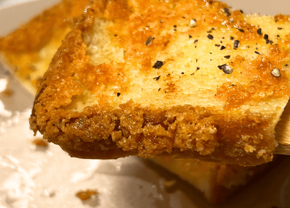 しっかりと食パンの耳部分までチーズがくっついていて、どこを食べても美味しそう。