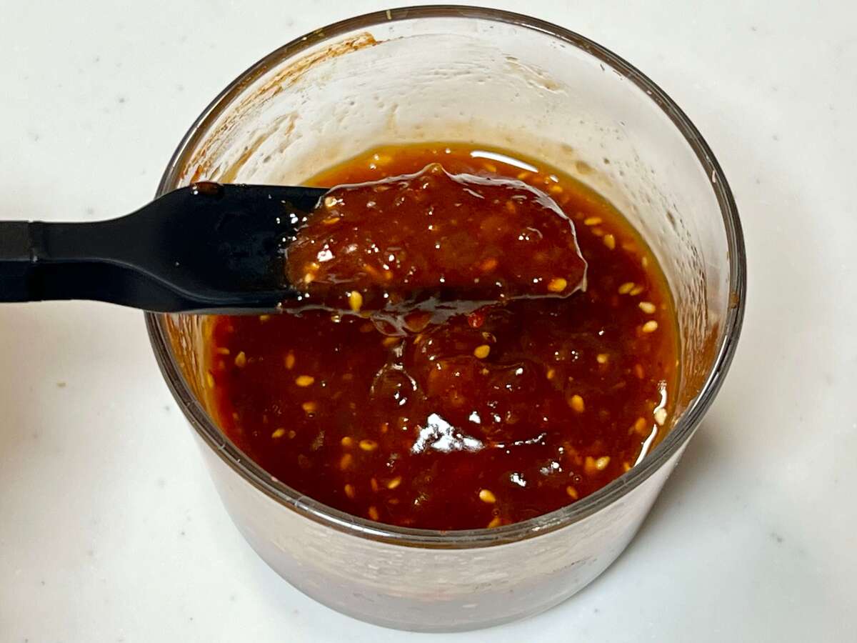 味見してみると、辛すぎない甘辛風味の味噌だれでとっても美味しい!
