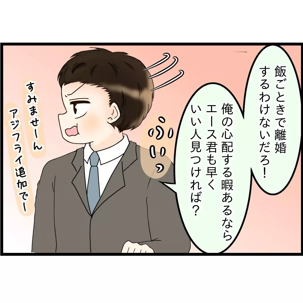 餅原の奥さんの姿が自分の姉と重なり、思わず餅原に怒鳴りつけてしまうエースくん。しかし、その言葉は1ミリも響いていなさそう……(涙)。