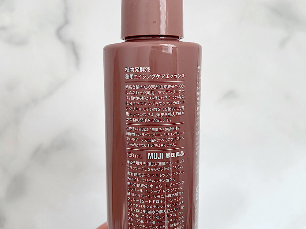 今回は、髪を育てる土台である頭皮に着目した、無印良品の「植物発酵液 薬用エイジングケアエッセンス」をご紹介します。