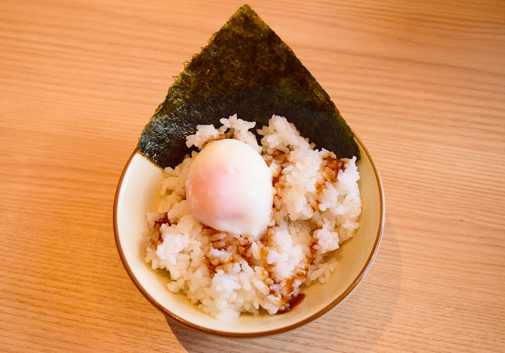 余談ですが、担々麺の辛さを少し和らげるため、別途「温玉ごはん」を注文しました。「温玉ごはん」は、ラーメンメニュー(※お子様ラーメンを除く)とセットで注文すると、プラス220円(税込)で追加できます。辛い系のラーメンとの相性がよいのでおすすめです。