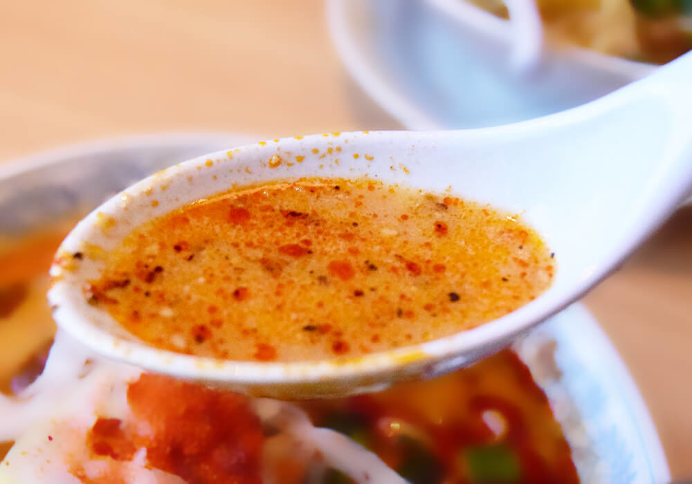 ただし、個人的な感想としては、特製台湾ミンチをスープと一緒に食べたほうが、結果的に辛さがマイルドに感じられます。というのも、ミンチの甘辛い味付けがスープに溶け込み、唐辛子の辛さとバランスよくブレンドされるからです。そんな理由から、今回は特製台湾ミンチをそのままのせた状態で実食してみました。