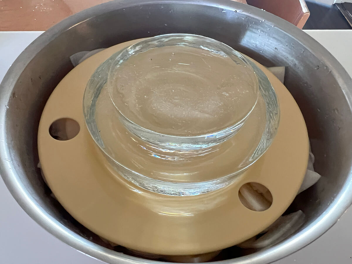 大根と同じ重さ(約1kg)の重しをして、常温にひと晩(約8時間)置いておきましょう。梅干し用の押さえ蓋と重しがちょうどいい塩梅です。漬物道具があると便利ですね。