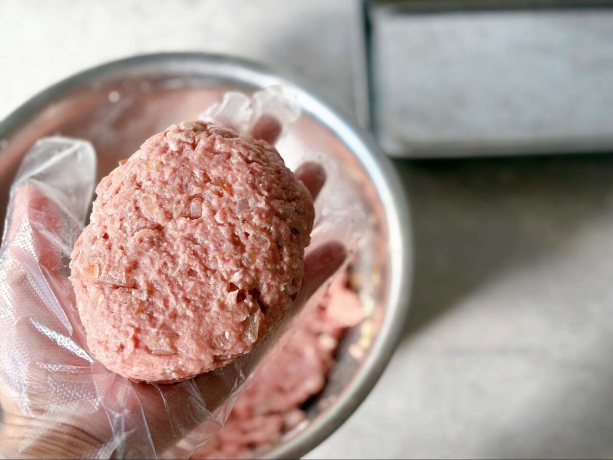 とくにいまの時季は、キンキンに冷たいひき肉をこねるのはツラいですよね。だからといって、事前に冷蔵庫から出して常温に戻してから作業するのは要注意!
