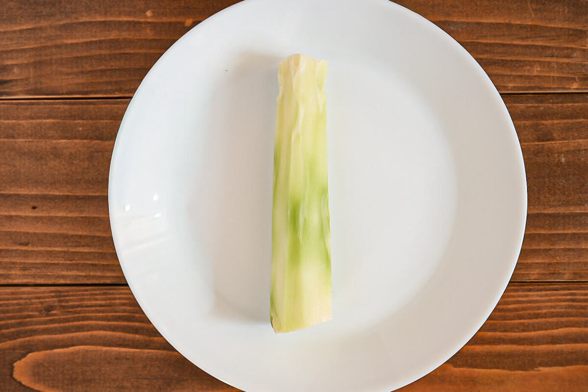 茎は皮がかたいので、外側を厚めに切り落とすか、スライサーで皮ごと薄く輪切りにして調理するのがおすすめ。