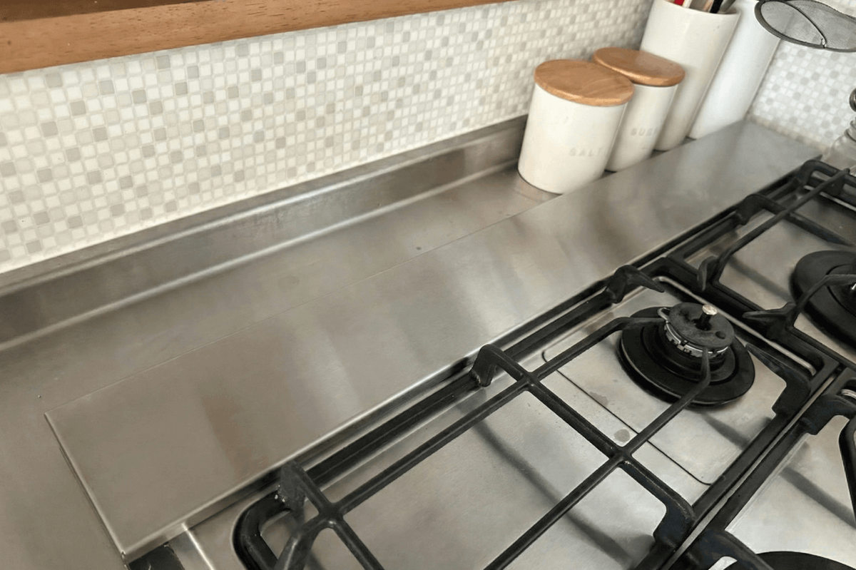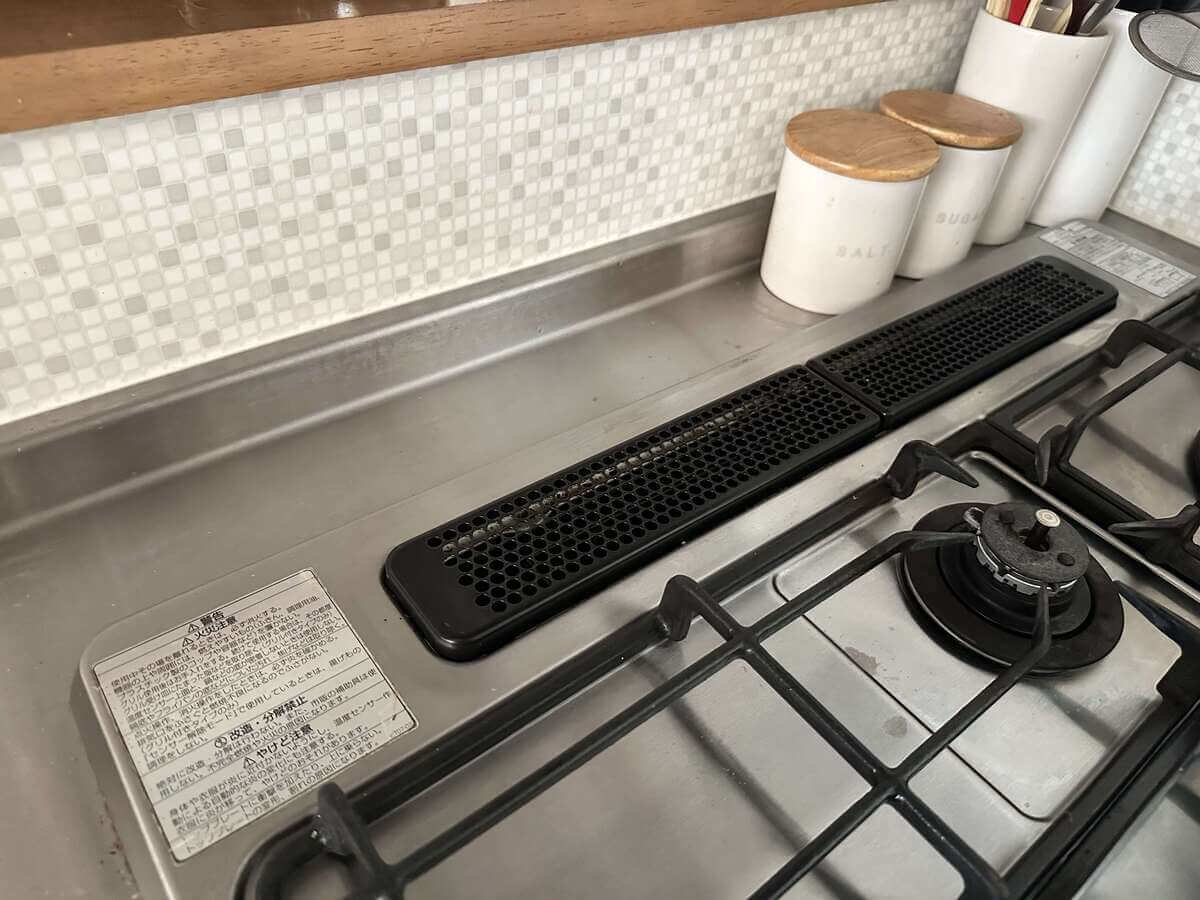 コンロ奥の排気口は、放っておくと油汚れがベッタリ付着します。「汚したくない!」「上に物が置けるから便利」と思って、最近よく見かける排気口カバーを置いている方は多いのではないでしょうか。