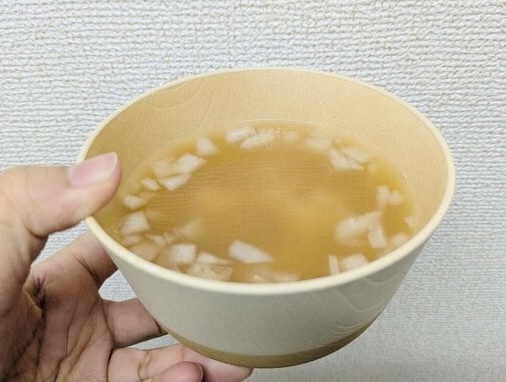 一口飲んでみると、レトルトの味噌汁よりもずっと家庭的なお味。優しく口の中で香るかつお節の風味にほっこりしました。