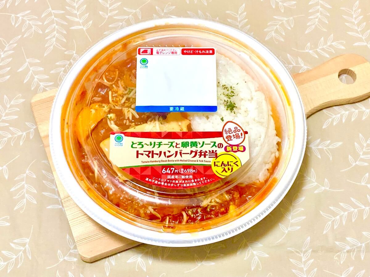 - 商品名:とろ〜りチーズと卵黄ソースのトマトハンバーグ弁当