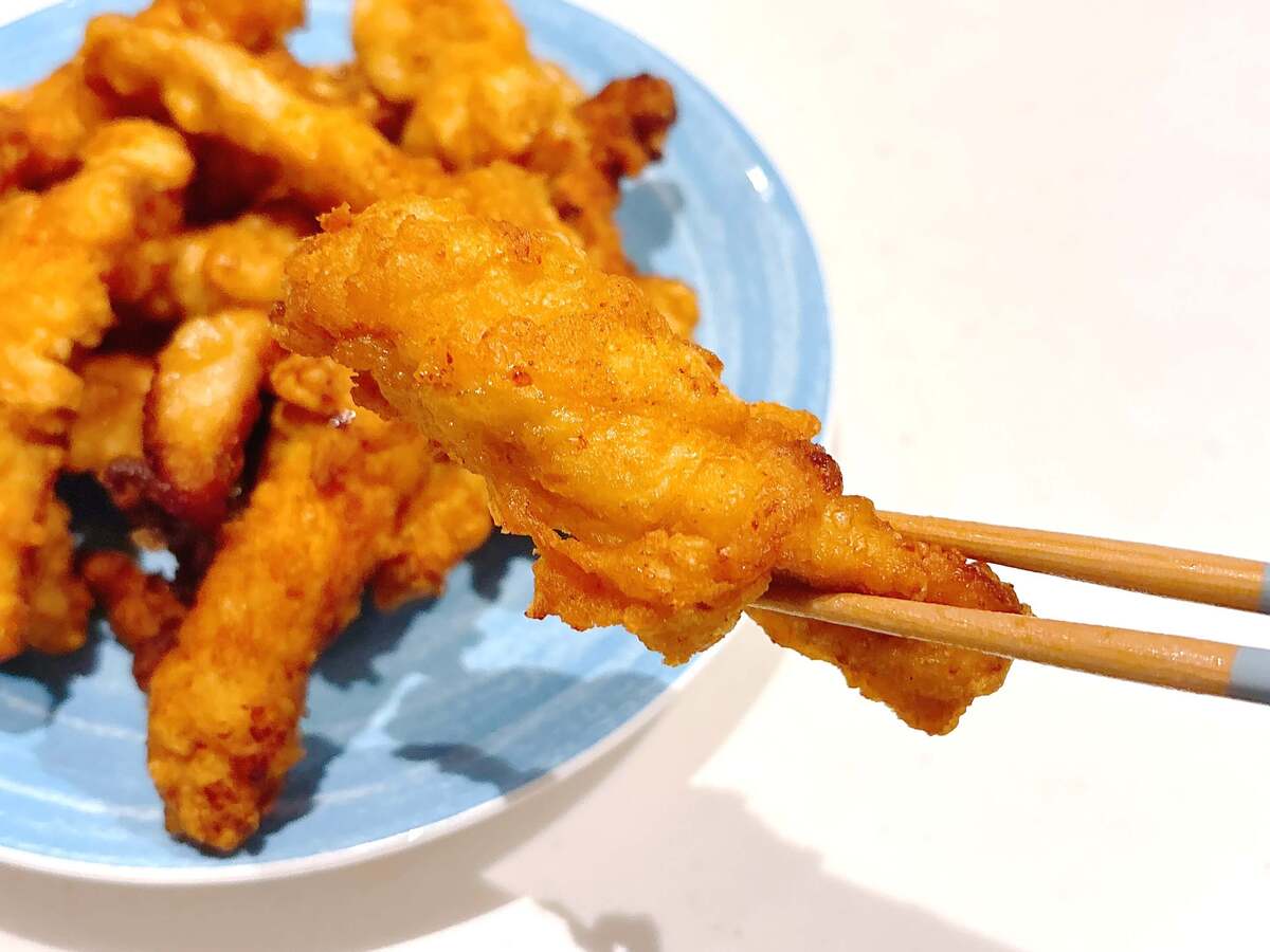 DOKINさんの「柔らか♡むね肉ステック唐揚げ」は、安い鶏むね肉をしっとり唐揚げに仕上げるレシピ。スティック状にするので、子どもが食べやすい唐揚げが作れます。