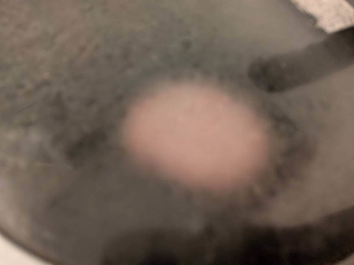 ひっくり返して水を50cc加え蓋をして、弱火で3分30秒。
