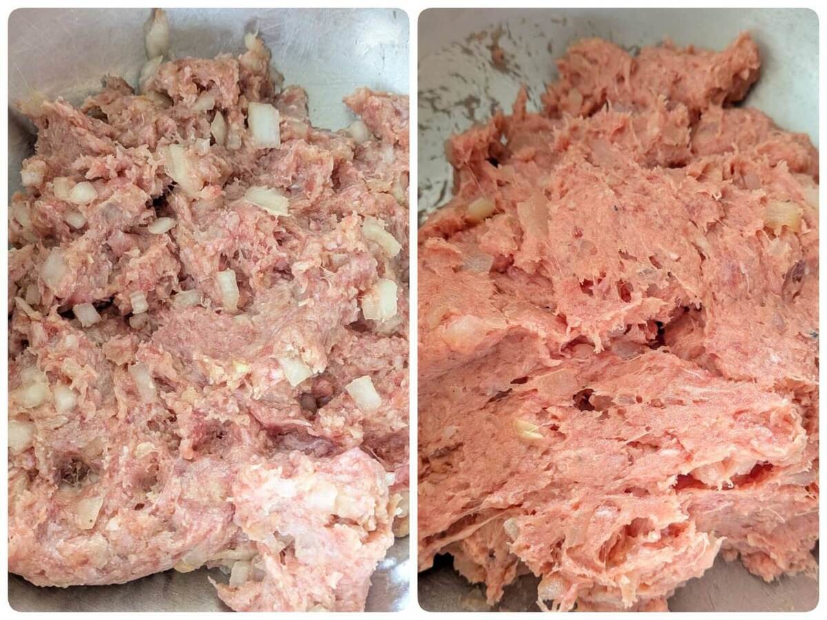 同じ肉、同じ材料を使っているのに、こねの時点でこんなに違います!