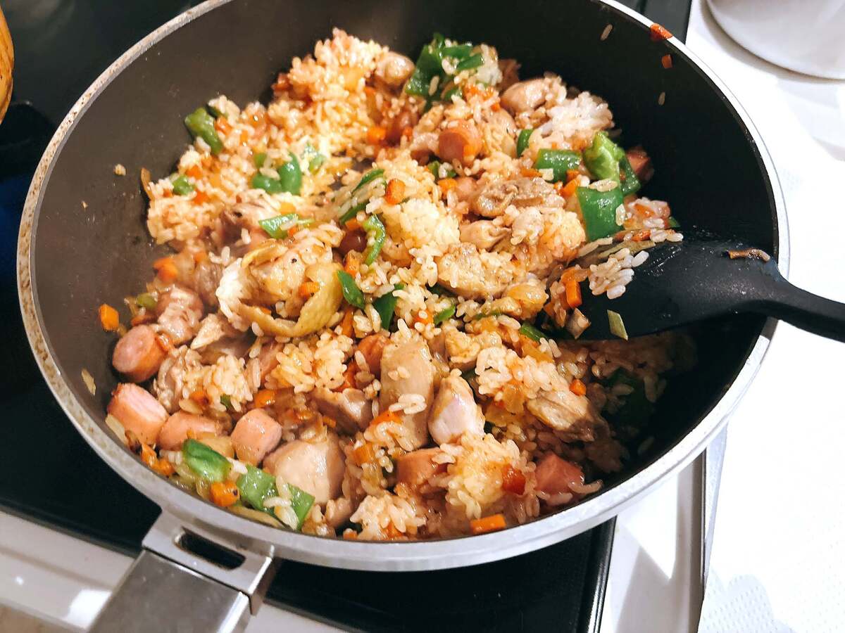 作り方④ご飯を加え、味付けする
