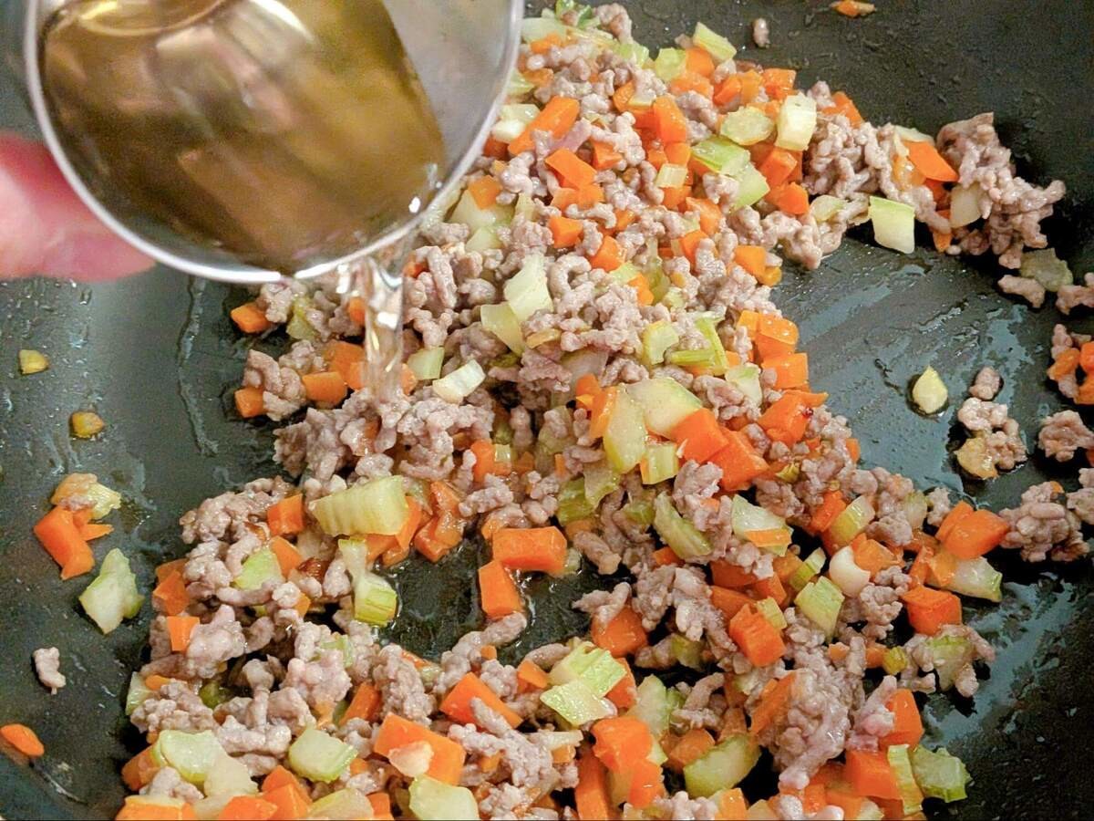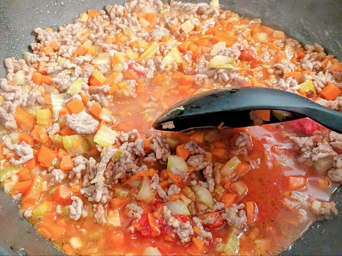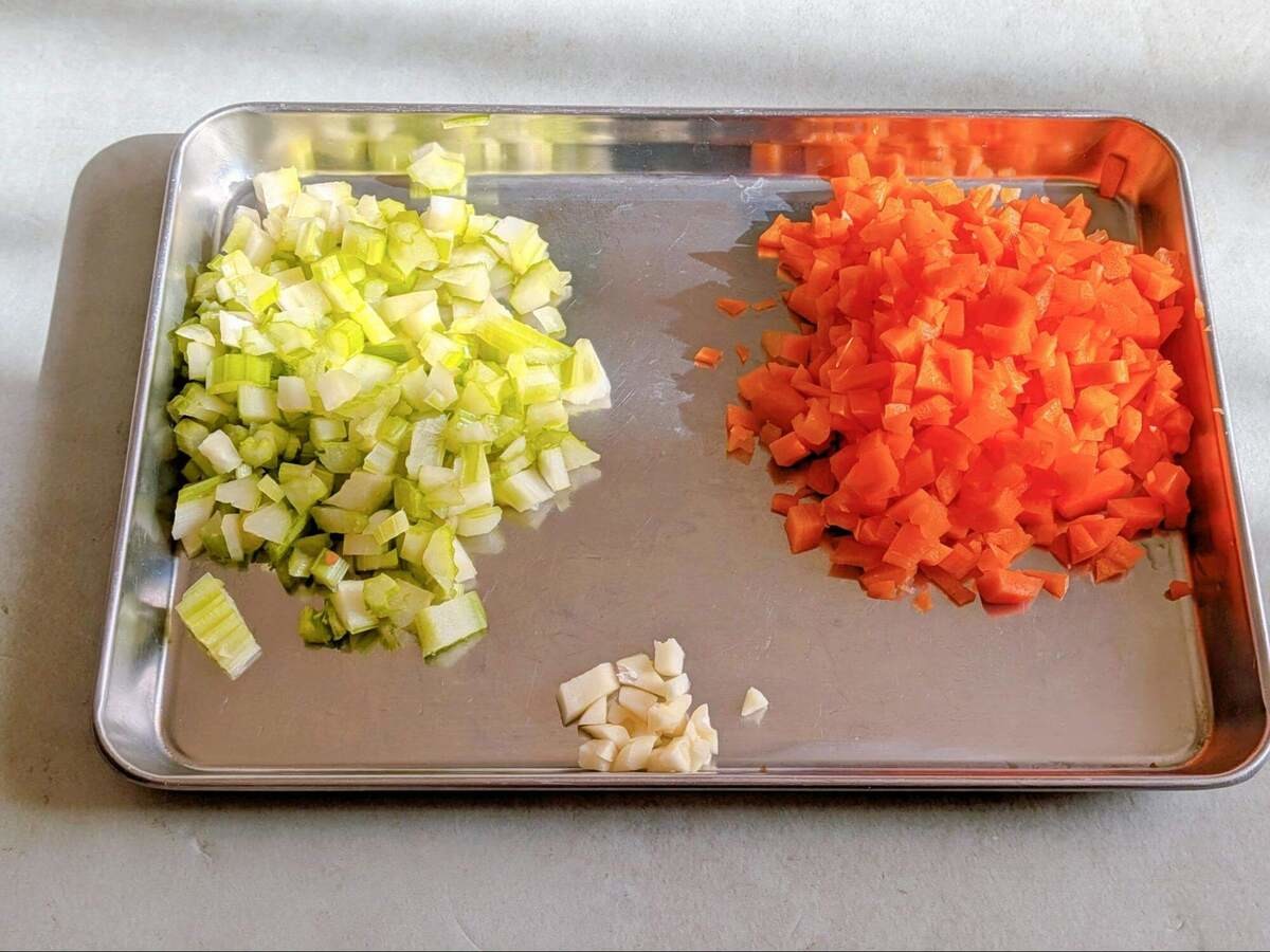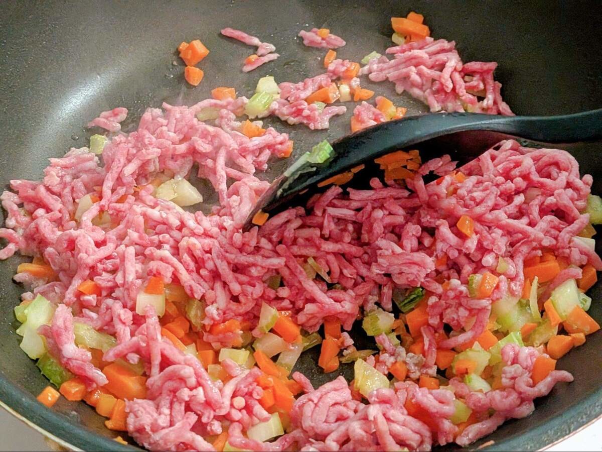 具材は挽き肉、人参、セロリー、ニンニクの4種類。