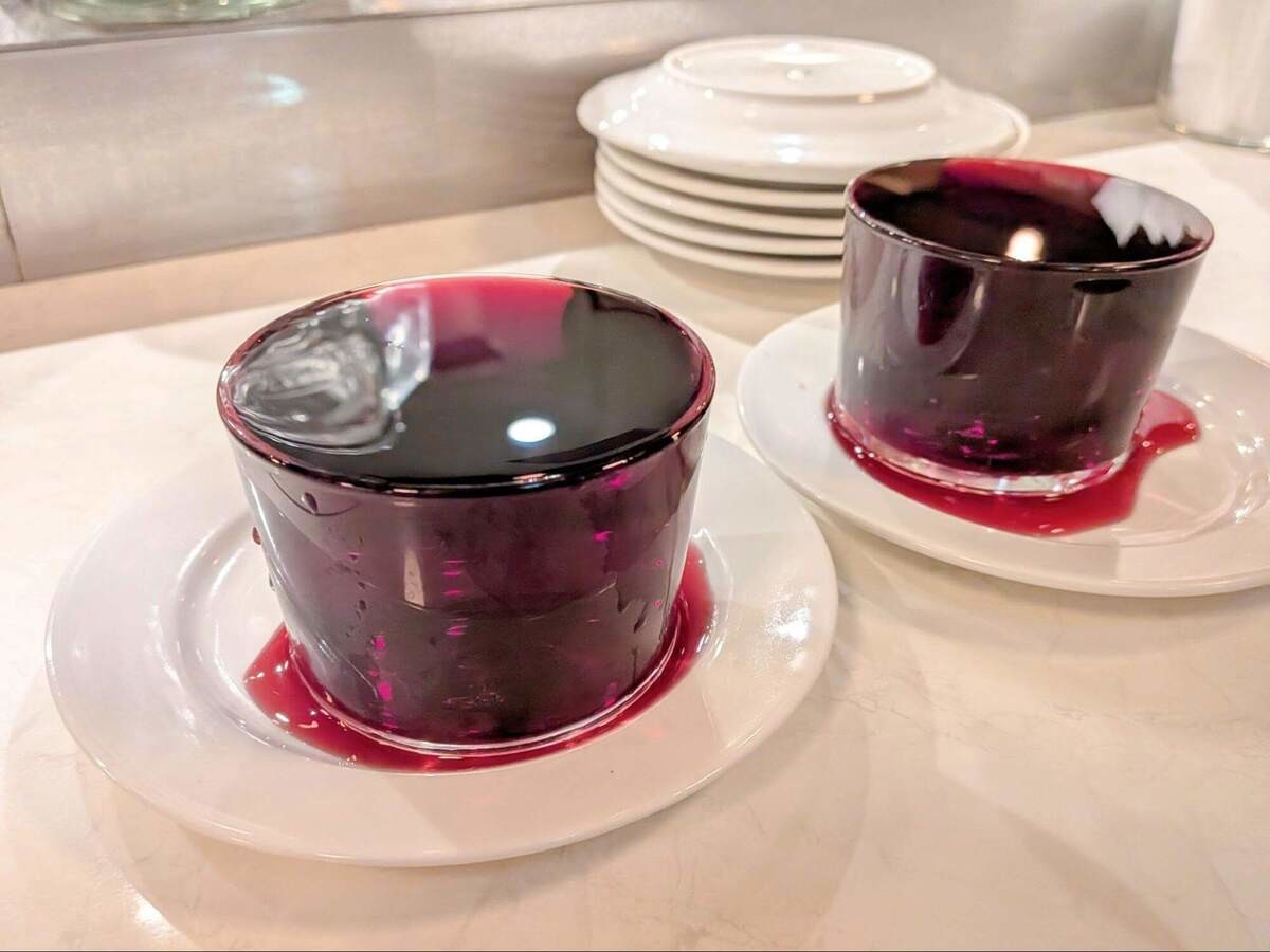 最初に注文したのは「なみなみワイン・赤(580円 税込)」。番組で下町のワイン好きが喜ぶポイントとして紹介されていました。