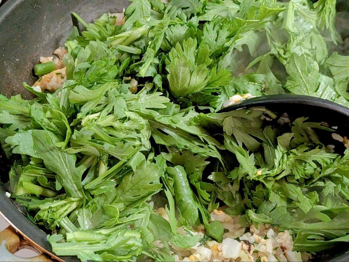 春菊を味わう上品チャーハン!変わり種レシピ、お試しを!