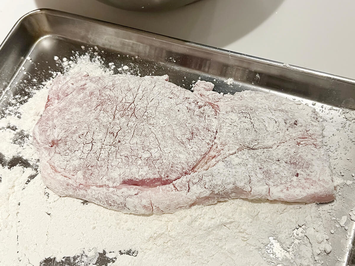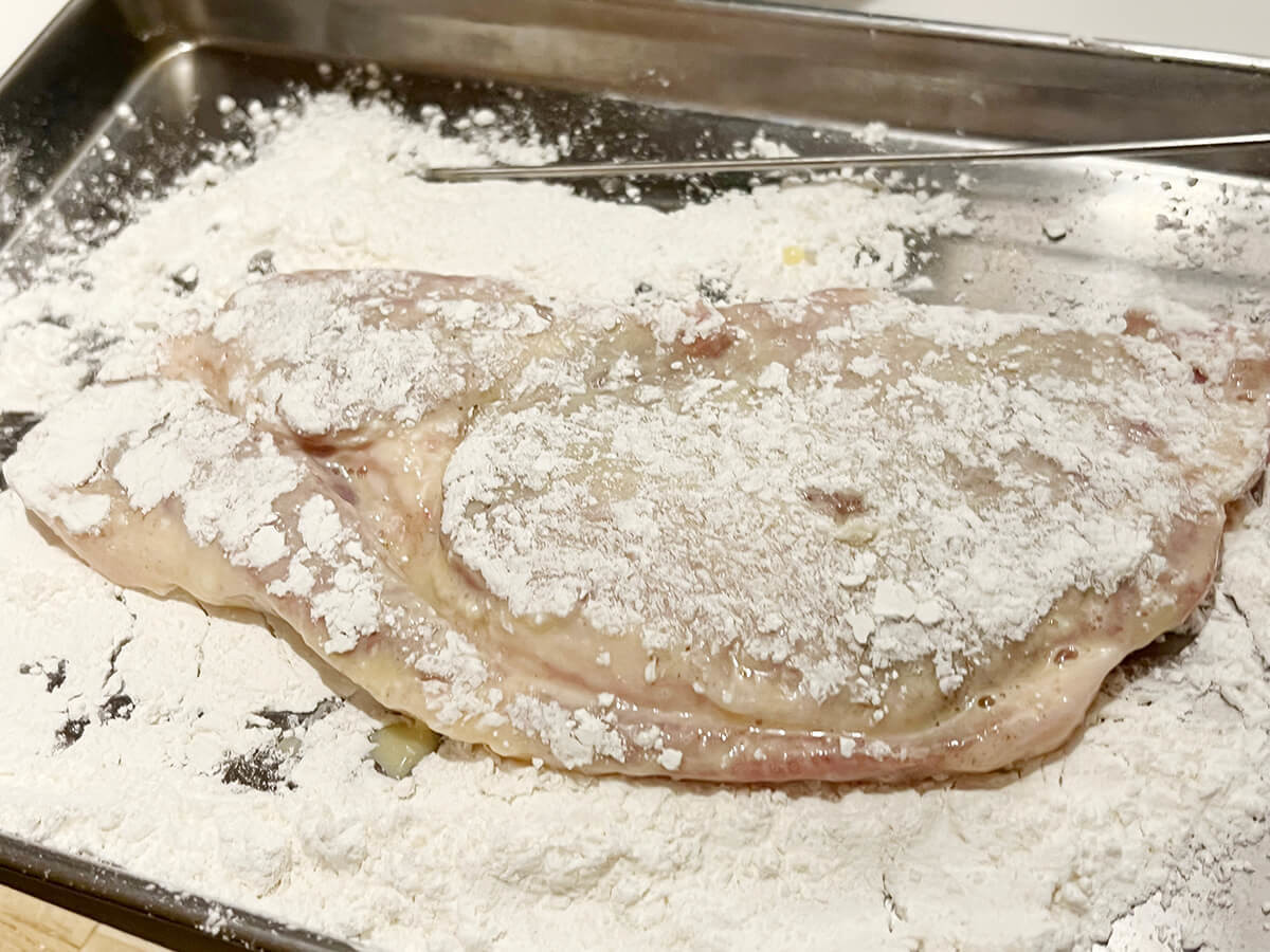全体に薄力粉をつけ、③の卵液にくぐらせます。