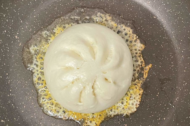 チーズがグツグツと溶け、少し色づき始めたタイミングで肉まんを投入するのがベスト。