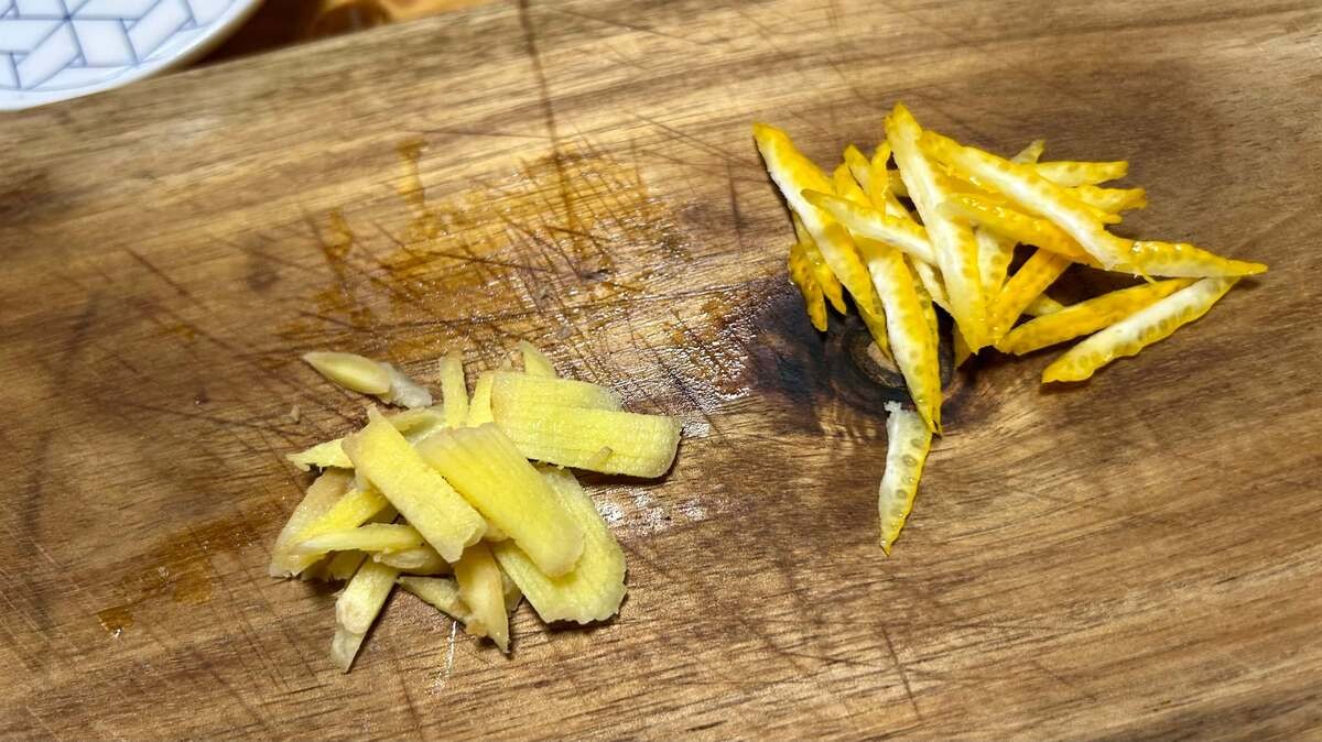 しょうがとゆずの皮は、香りが引き立つようにせん切りにしておきましょう♪