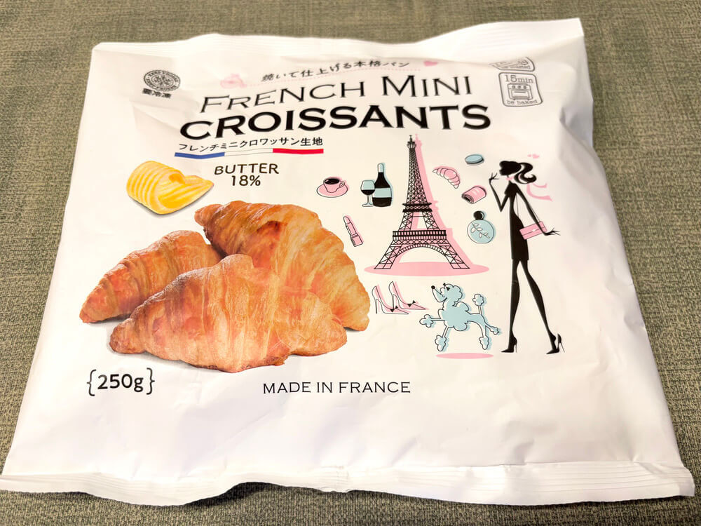 まず袋から取り出してみると、凍ったミニクロワッサンが生地の状態で出てきます。トースターなどで焼くことで、完成するタイプの商品ですね。