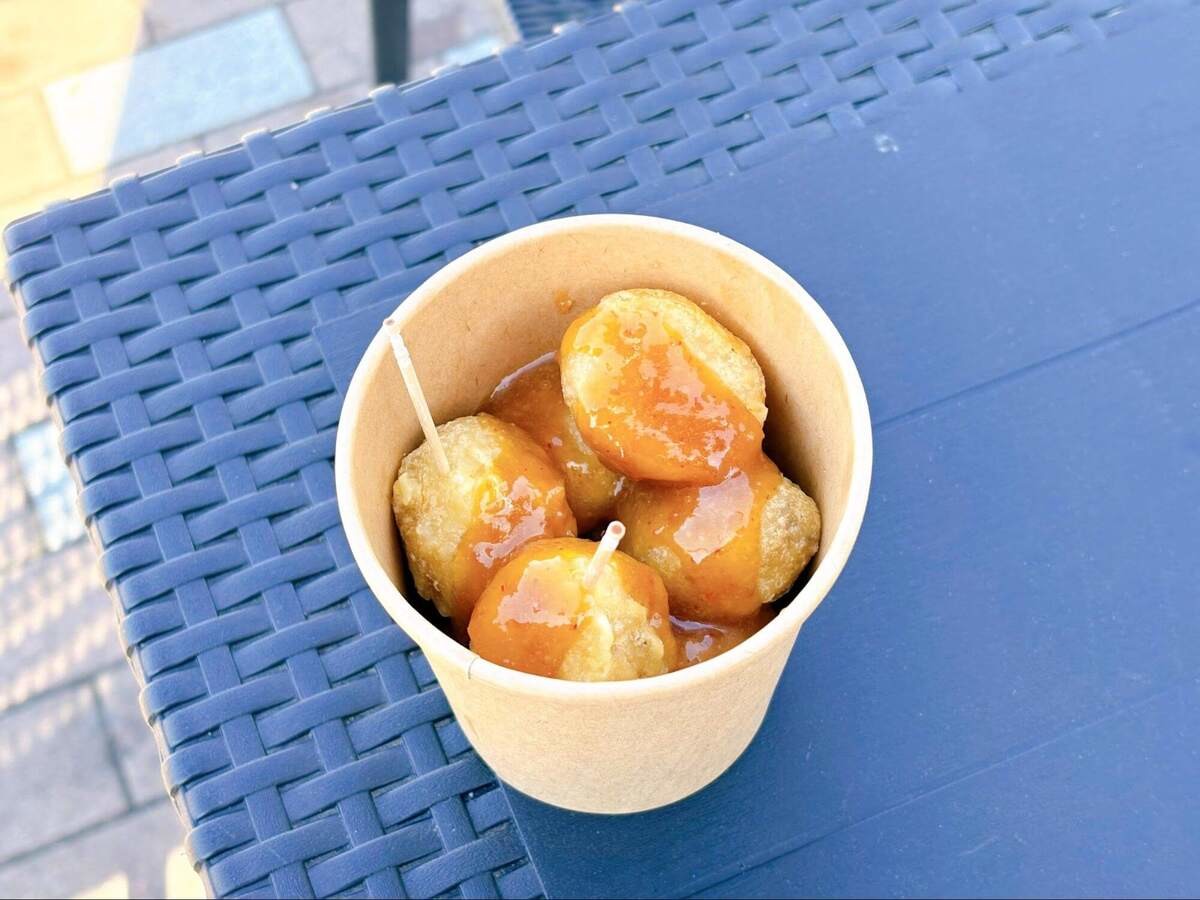 こちらも秩父の名物として知られる「味噌ポテト」。揚げたてのじゃがいもに、甘じょっぱい味噌ダレをたっぷり絡めた、素朴ながらクセになる一品です。