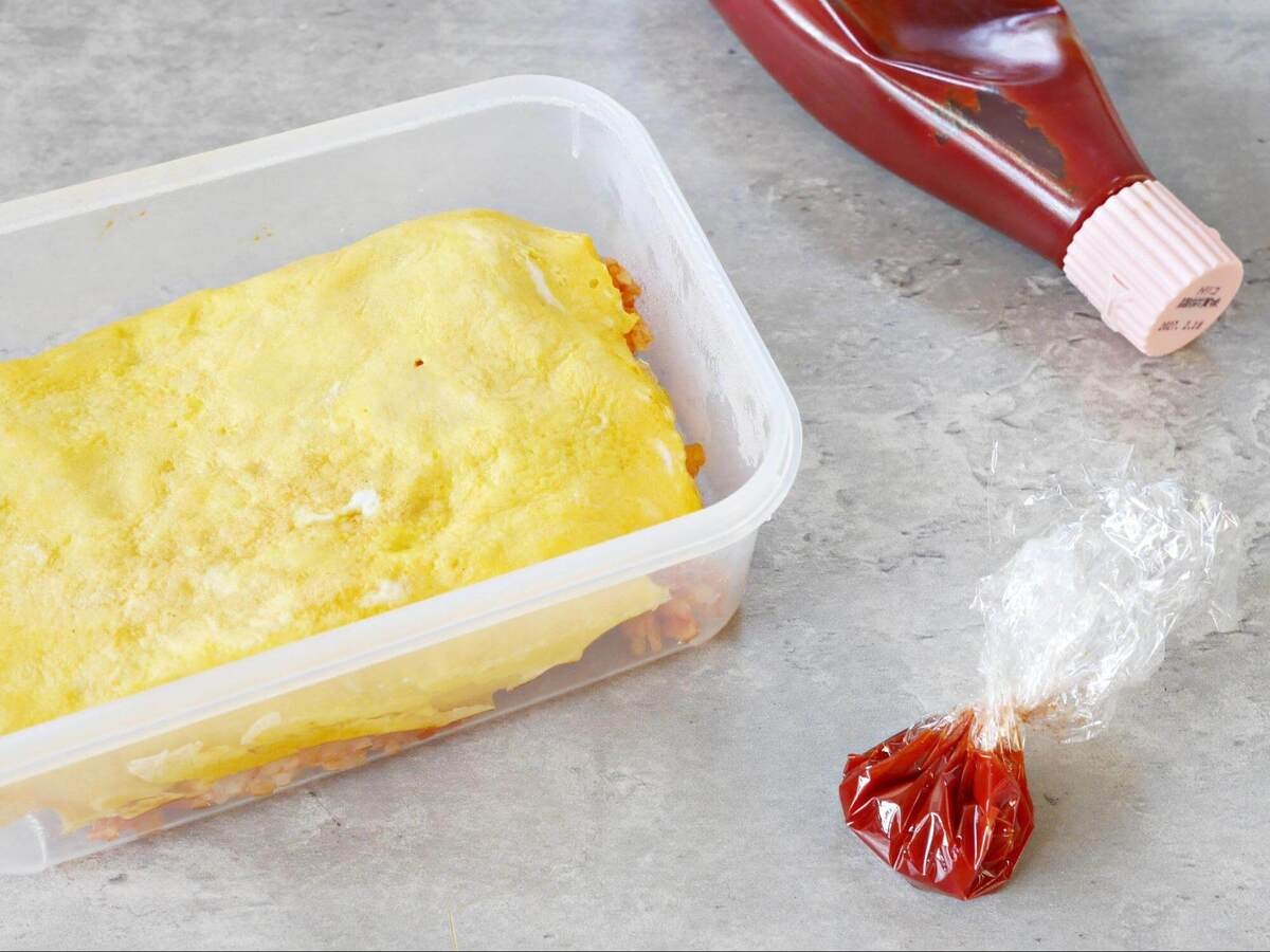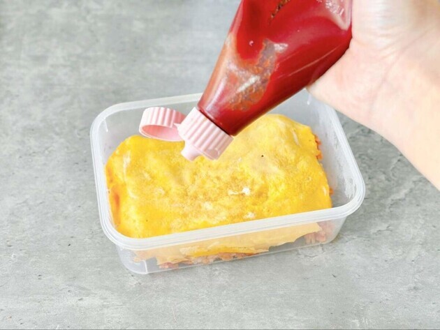 また、ケチャップをかけた状態でラップやフタをすると、ベチャッと広がって見た目も悪くなりがち。