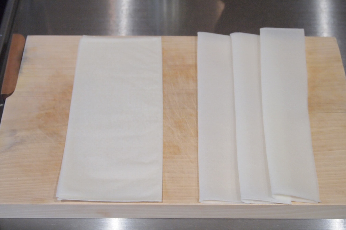 見た目はとても春巻きの皮には見えません。まるで薄いお餅のような仕上がりですね。
