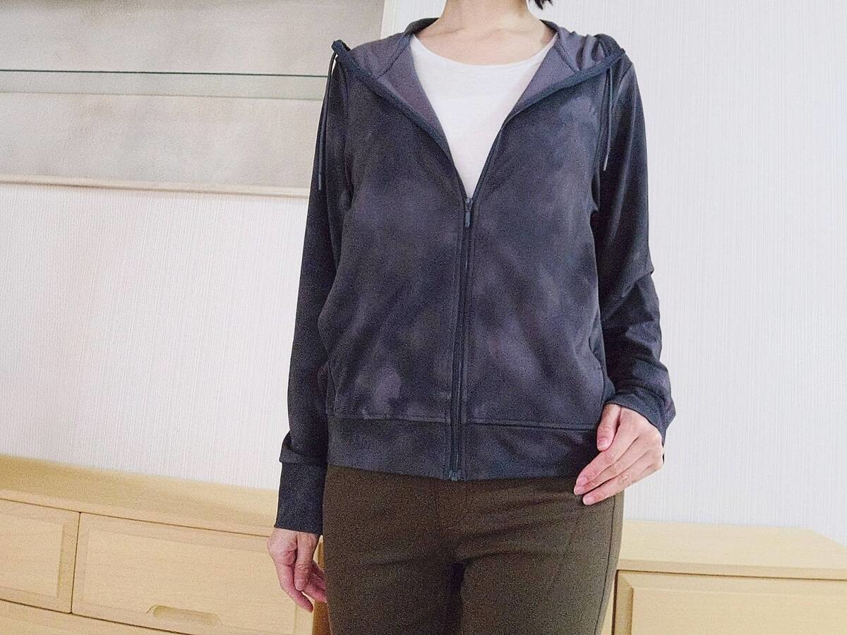 スポーティなフルジッププリントパーカーとあわせてもスッキリ着られました。
