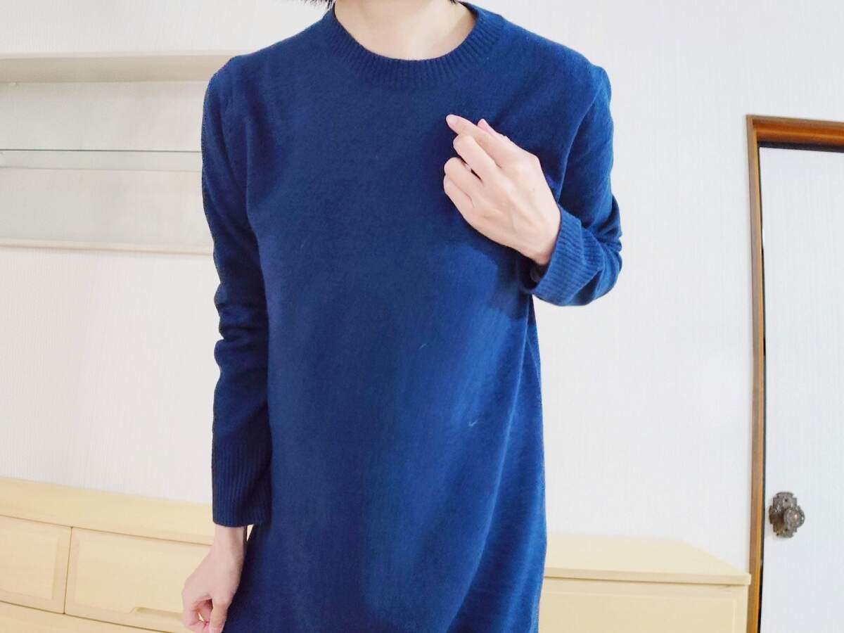 上にユニクロのスフレヤーンワンピースのブルーМサイズを着てみました。