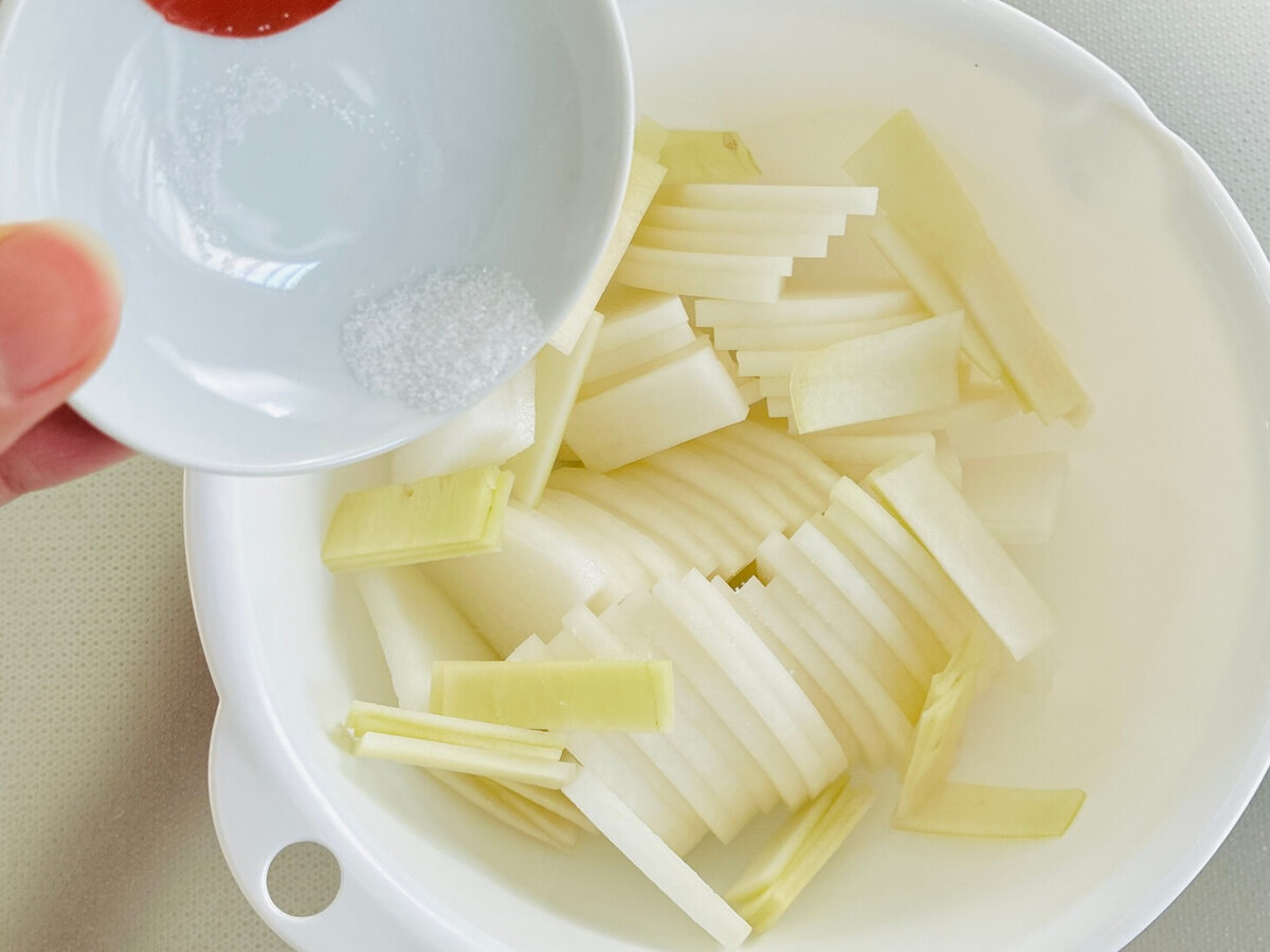 大根に塩を振り、10分ほど置きます。